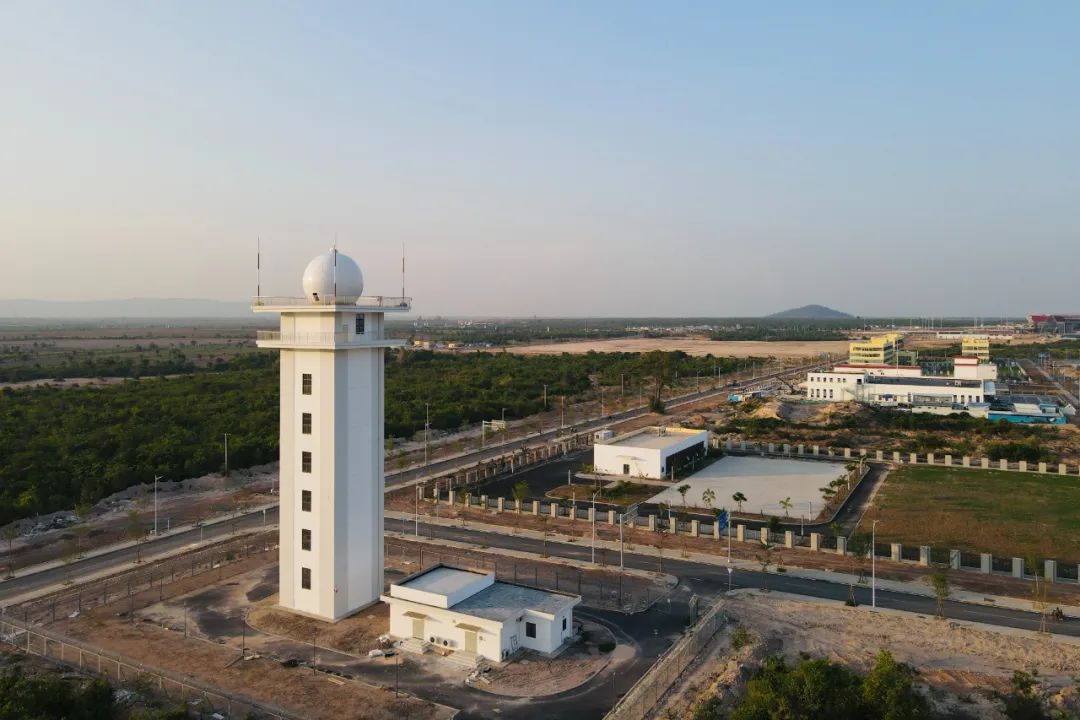 暹粒吳哥國際機場項目位于暹粒省索尼貢縣,距離世界文化遺產吳哥窟40公里,是柬埔寨王國重點打造的國際性樞紐機場,也是中柬產能合作重點項目之一、“一帶一路”倡議的重大基礎設施建設項目。四創(chuàng)電子于2022年中標暹粒機場X波段天氣雷達項目,并于2023年5月完成自主生產的X波段天氣雷達設備安裝及培訓,7月通過驗收。該型天氣雷達采用全相參脈沖多普勒體制,能夠連續(xù)監(jiān)測目標距離以內強對流天氣的發(fā)生、發(fā)展變化,全面獲取目標范圍內風場、大氣湍流狀況、降雨類型、降雨強度、降雨量分布以及降雨云內部粒子相態(tài)、粒子尺度譜分布等信息;處理生成探測區(qū)域降水量、降水類型、雷暴、大風、下擊暴流等氣象保障產品。